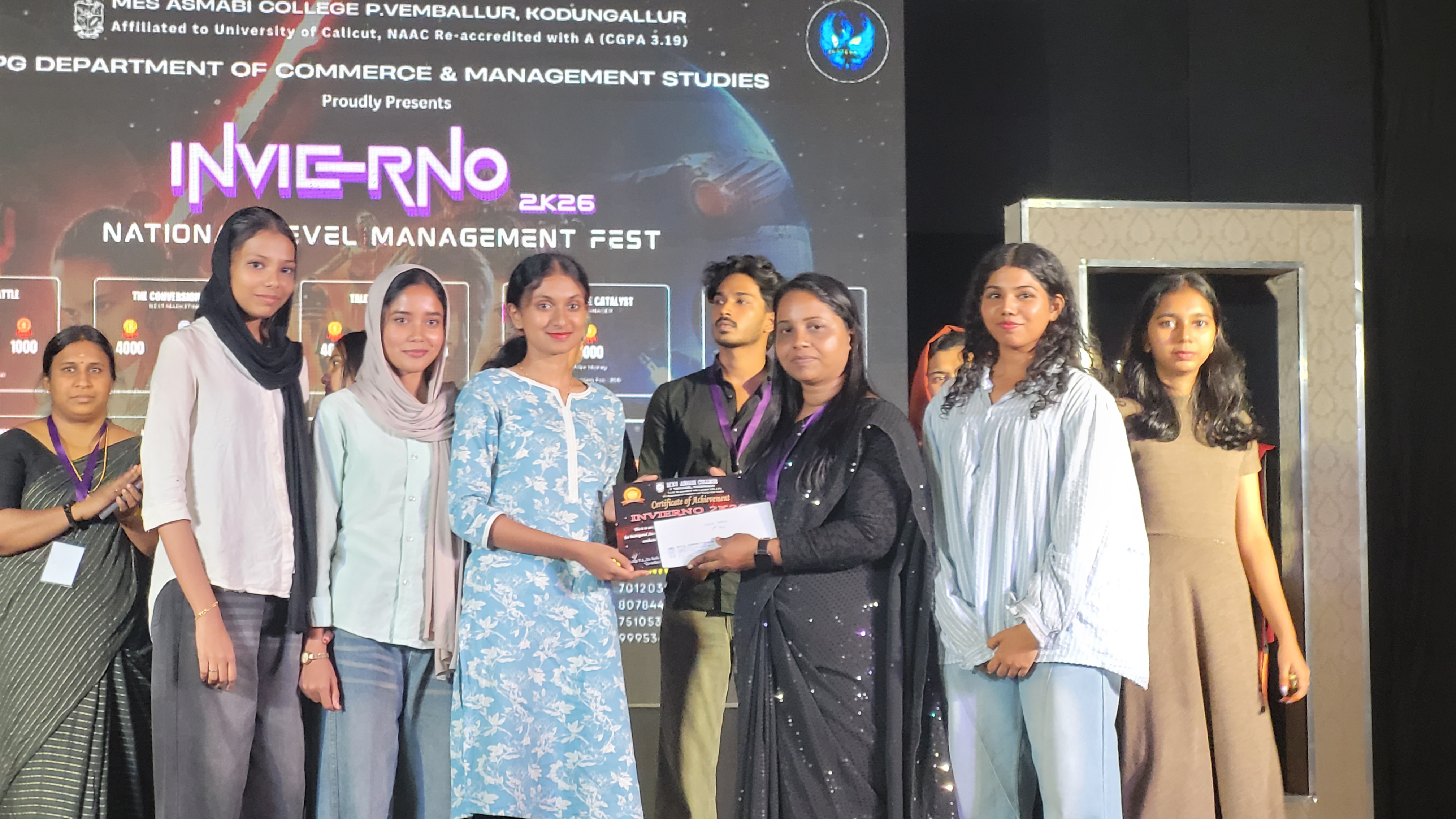 Winners At Inverino2K26 Intercollegiate Management Fest Conducted by Mes Asmabi College on 08/01/26