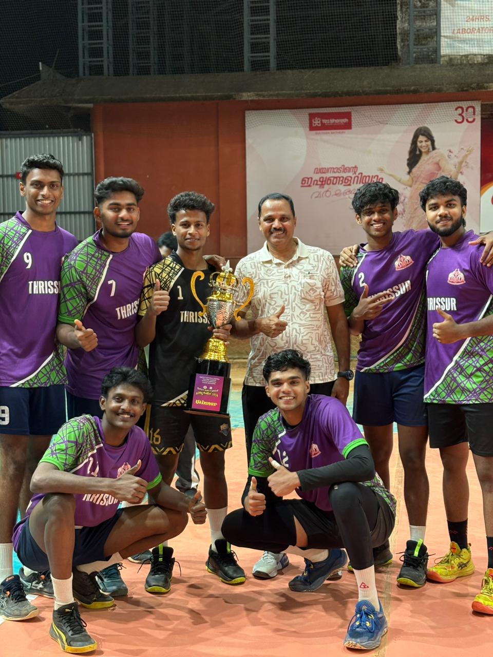 Winnners!!!!!🏆 Holy Grace Academy of Arts and Science, Mala, in the Thrissur district Technical Committee Youth Volleyball Championship. Beat Christ College, Irinjalakuda in the final 25-15, 21-25, 25-23