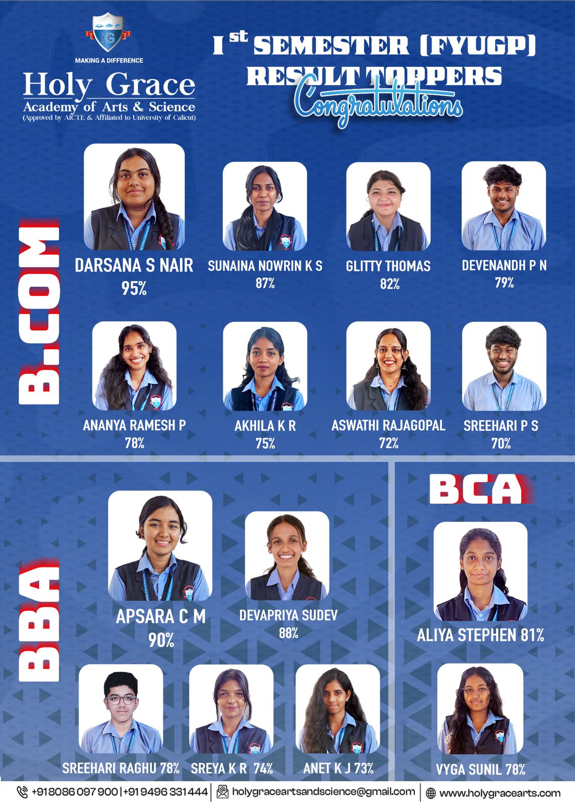 1st Semester (FYUGP) BBA, B.Com,BCA University Exam Toppers