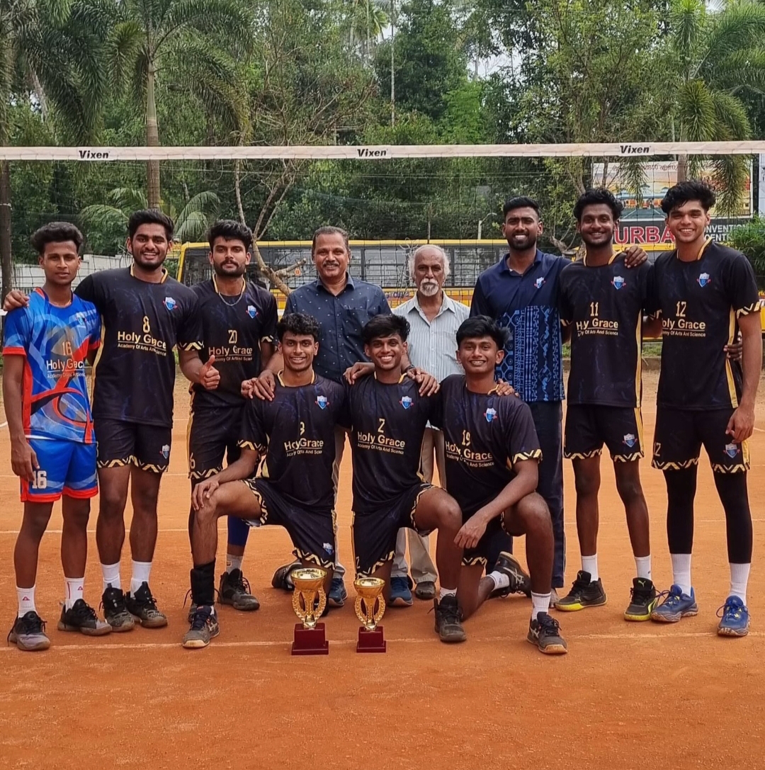1st Thomas Paulina Arimboor Memorial All Kerala Inter Collegiate Volleyball Tournament on 11&12 Sep 25 Conducted by Holy Grace Group of Institutions Winners - Bishop Moore College Mavelikkara 🥇 Runners Up - Holy Grace Academy of Arts and Science, Mala🥈